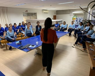 Realização de palestras para promover saúde emocional e bem-estar nas empresas.